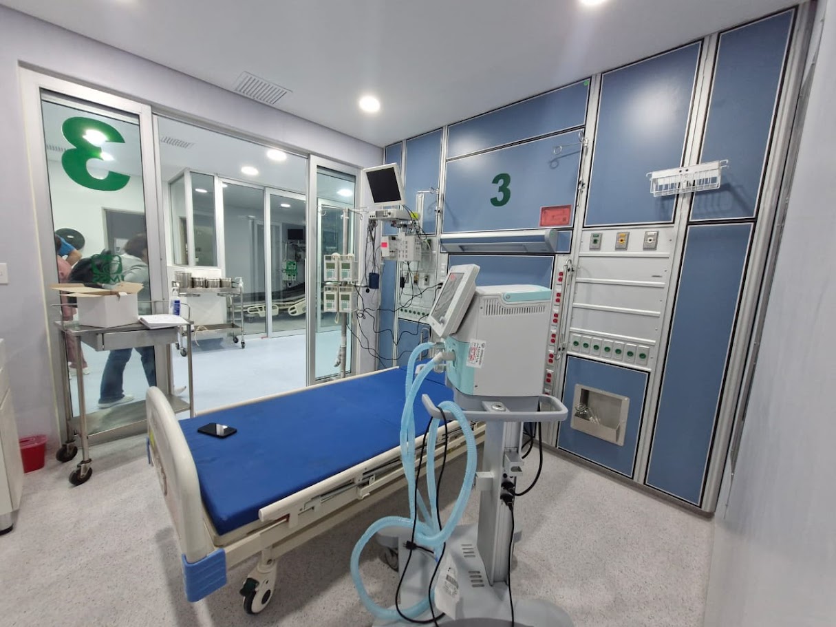 - Iluminación: Módulo lateral integrado en la construcción de la pared hospitalaria.